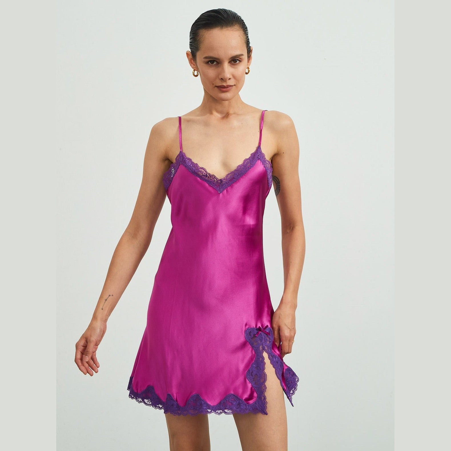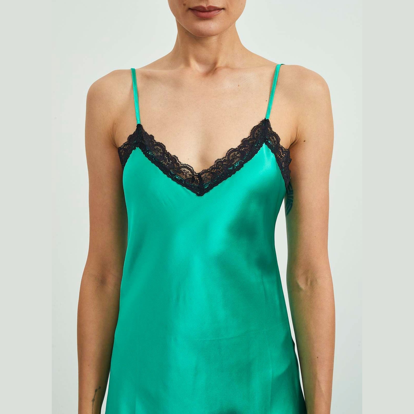 Cette ravissante nuisette en soie se distingue par ses bretelles en dentelle, son profond décolleté en V et son séduisant dos ouvert, mêlant avec élégance et sensualité. Cette nuisette est incroyablement confortable.