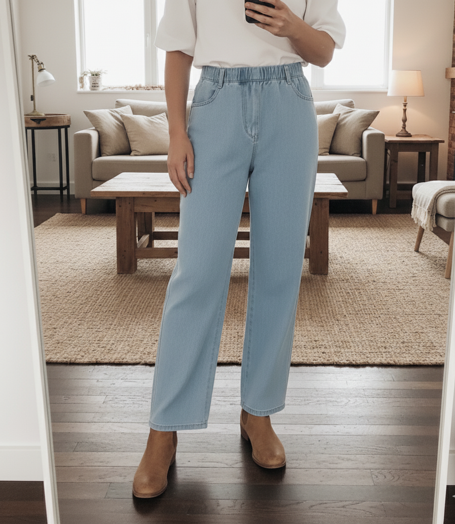 Amouer cette jean, elle était exactement ce que je voulais, le denim est génial, elle taille très bien, je te conseille juste d'acheter une taille de plus que celle à laquelle tu es habituée à porter, je porte habituellement du 42 mais j'ai pris du 44 et elle était parfaite.